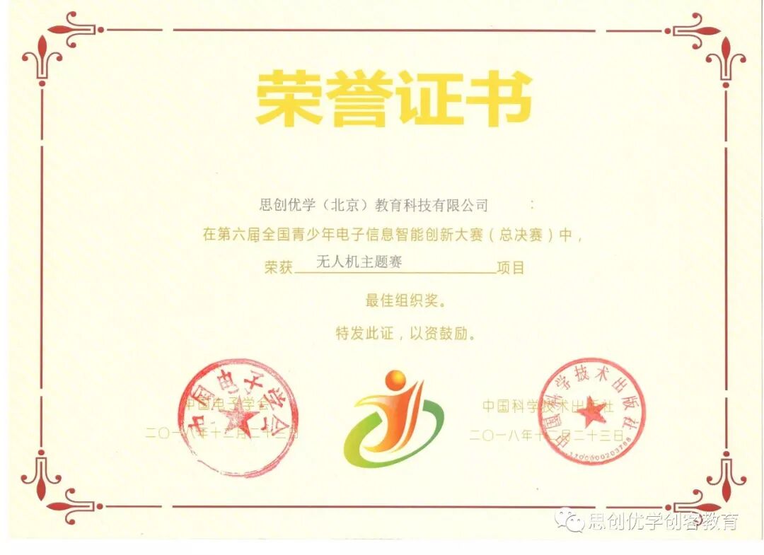 無人機(jī)作為大賽傳統(tǒng)項(xiàng)目,本屆選手由來自全國各地市區(qū)的一百多名中小學(xué)生同臺競技。無人機(jī)比賽競技?xì)夥諠夂瘢荣惍惓<ち?。裁判組專業(yè)無人機(jī)老師表示,從無人機(jī)比賽的過程能看出來各地選手都經(jīng)過了刻苦地訓(xùn)練,但很多選手仍然需要系統(tǒng)的無人機(jī)理論知識學(xué)習(xí)和專業(yè)的訓(xùn)練指導(dǎo)。 思創(chuàng)優(yōu)學(xué)(北京)教育科技有限公司在本屆無人機(jī)主題賽中榮獲“最佳組織獎”,這更加堅(jiān)定了我們的信念,期待能為中國創(chuàng)客教育貢獻(xiàn)出我們的力量。