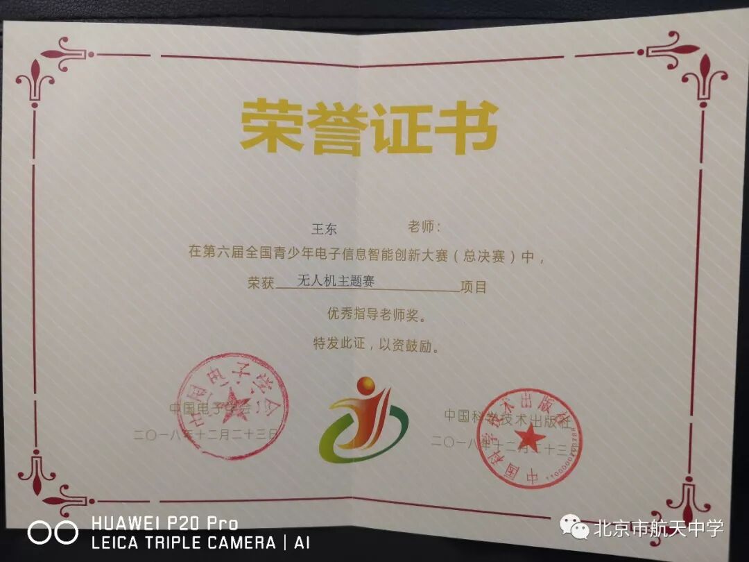 近日,北京市航天中學(xué)在第六屆全國青少年電子信息智能創(chuàng)新大賽的無人機(jī)項(xiàng)目的成績獲悉反饋,共3個(gè)一等獎(jiǎng),7個(gè)二等獎(jiǎng),7個(gè)三等獎(jiǎng),校內(nèi)的輔導(dǎo)教師王東老師獲“優(yōu)秀指導(dǎo)老師獎(jiǎng)”,學(xué)校也因?qū)W生成績優(yōu)異獲“最佳組織獎(jiǎng)”。