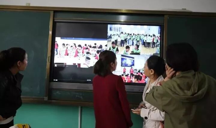 指導(dǎo)老師和學(xué)生家長(zhǎng)在休息間看直播