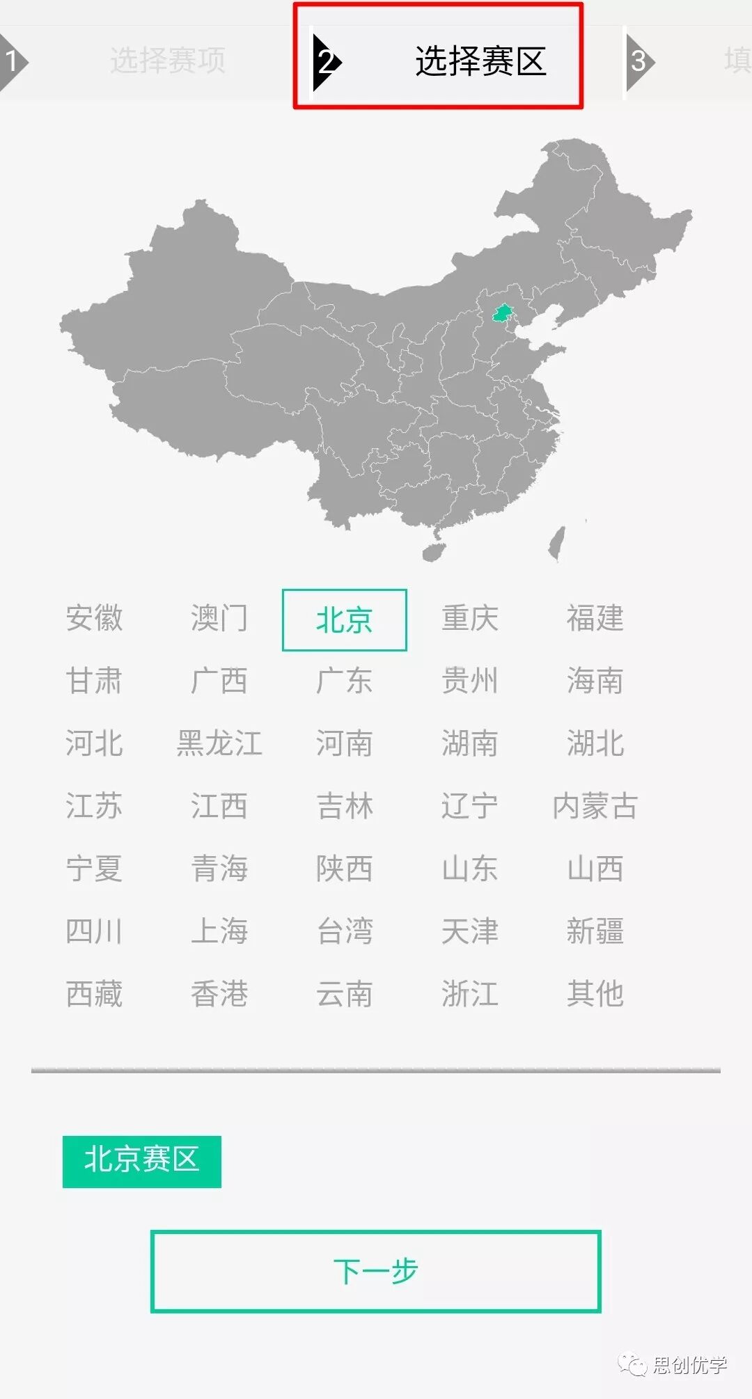 五、選擇賽區(qū),點擊下一步