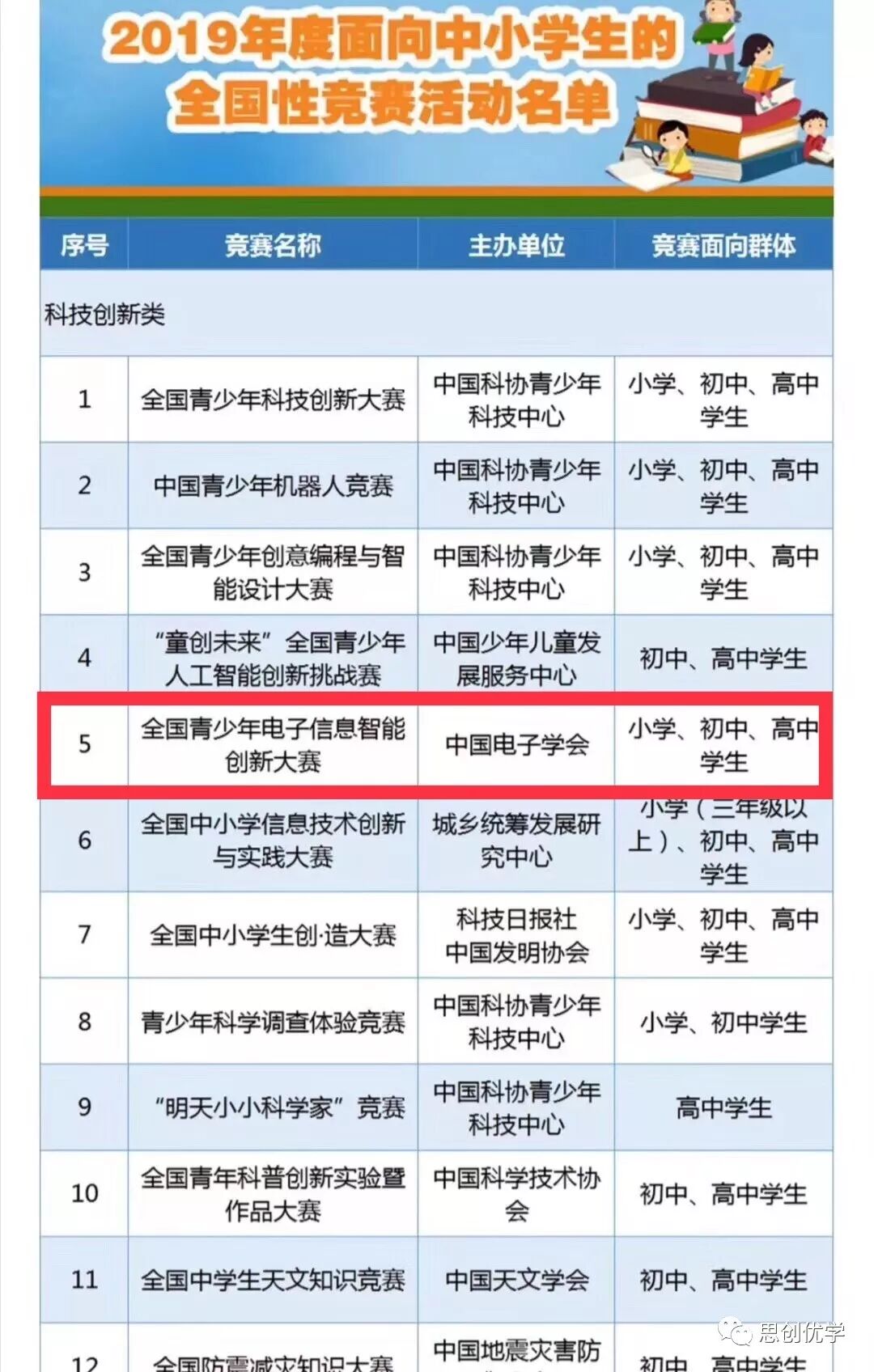 2019全國青少年電子信息智能創(chuàng)新大賽,是經(jīng)《教育部辦公廳關(guān)于公布2019年度面向中小學(xué)生的全國性競賽活動的通知》公示的正規(guī)競賽活動,是面向全國中小學(xué)生的科創(chuàng)類競賽活動,也是科普中國共建基地2019年度重要活動。